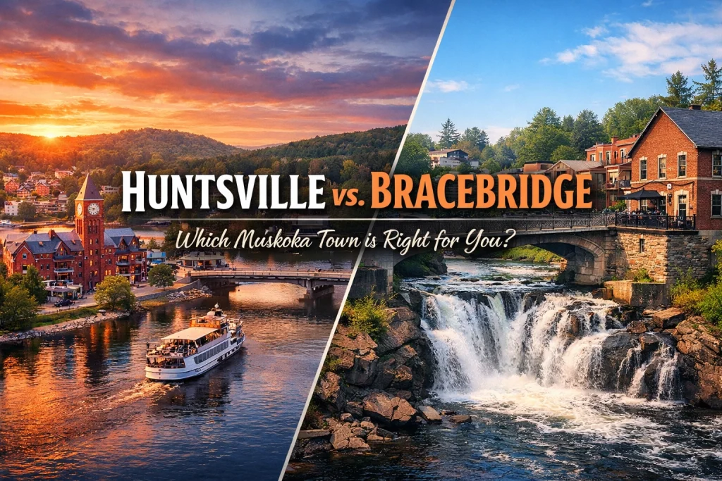 If you’re shopping for Muskoka real estate and trying to decide between Huntsville and Bracebridge, you’re not alone. These two towns are the beating heart of cottage country, and each offers a completely different vibe. Whether you’re buying a cottage in Muskoka for weekend getaways or making a permanent move, understanding what makes each town unique will save you a lot of second-guessing down the road.